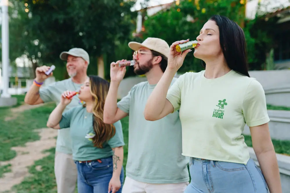 Bez ohledu na to, kam vás život zavede, naše terpenové nápoje jsou tu, aby vám to co nejvíce zpříjemnily. Naše terpeny, přirozeně získané z rostlin, ovoce, květin, bylin a koření, jsou mistrně namíchány naším terpenologem, aby se maximalizoval jejich přínos. Ať už se chcete rozveselit nebo uklidnit, The Happiest Hour má pro vás směs terpenů.